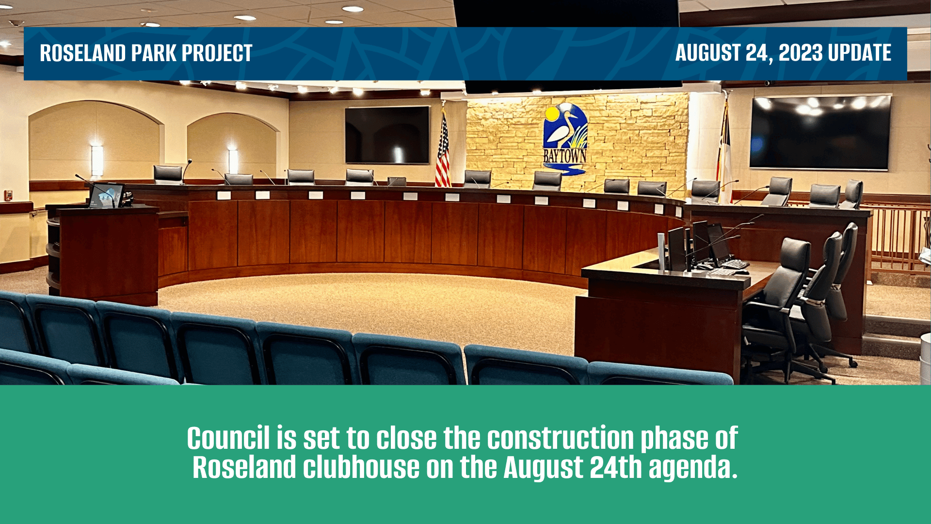Council is set to close the construction phase of Roseland clubhouse on the August 24th agenda.